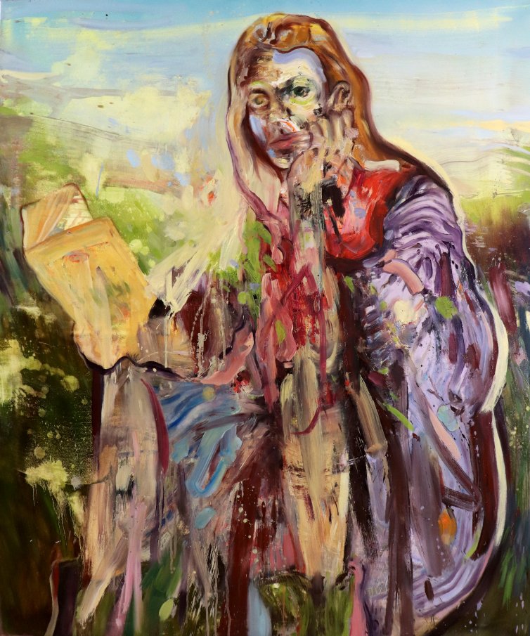 “Pause” (Figure in the field). Oil on canvas. 120 x 100 cm.