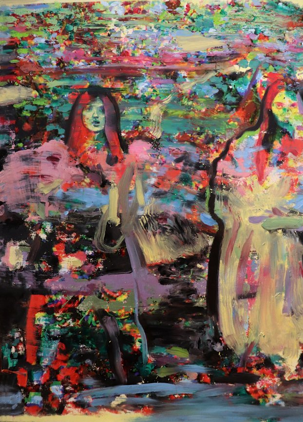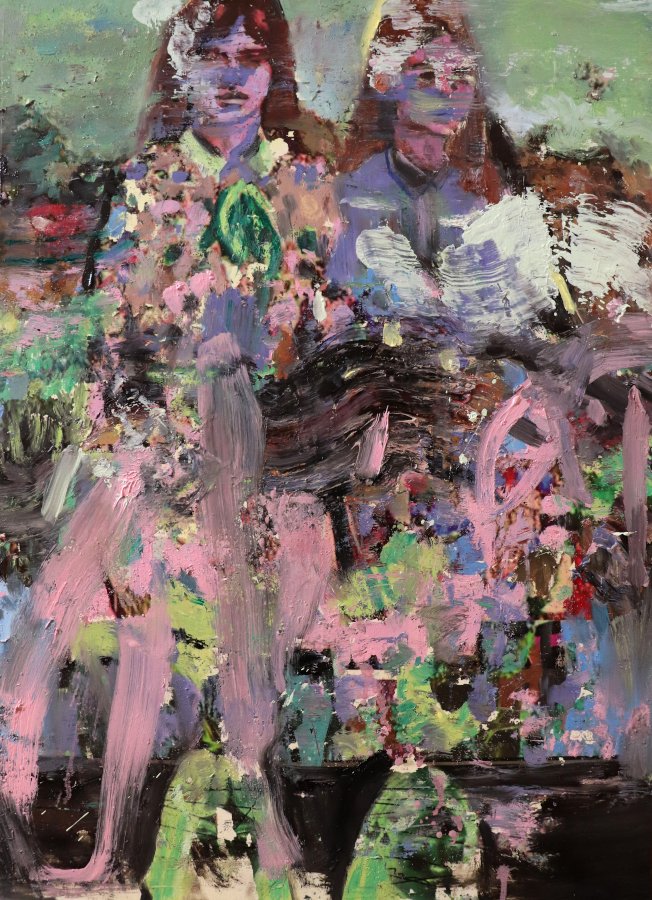 “Two figures in a garden” . Oil on canvas. 140 x 130 cm.