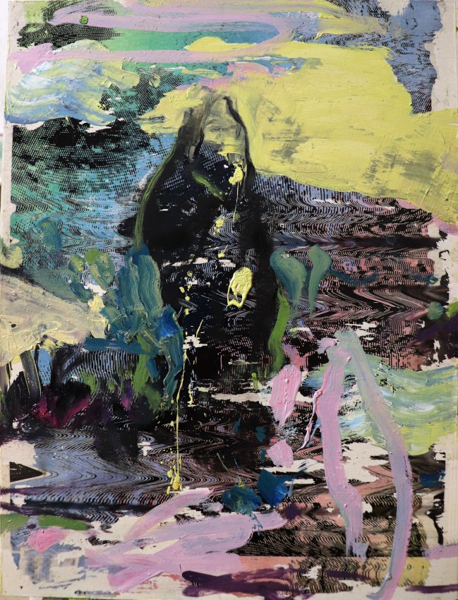 “L’attente (VHS Restoration Loop)” . Oil on canvas. 140 x 130 cm